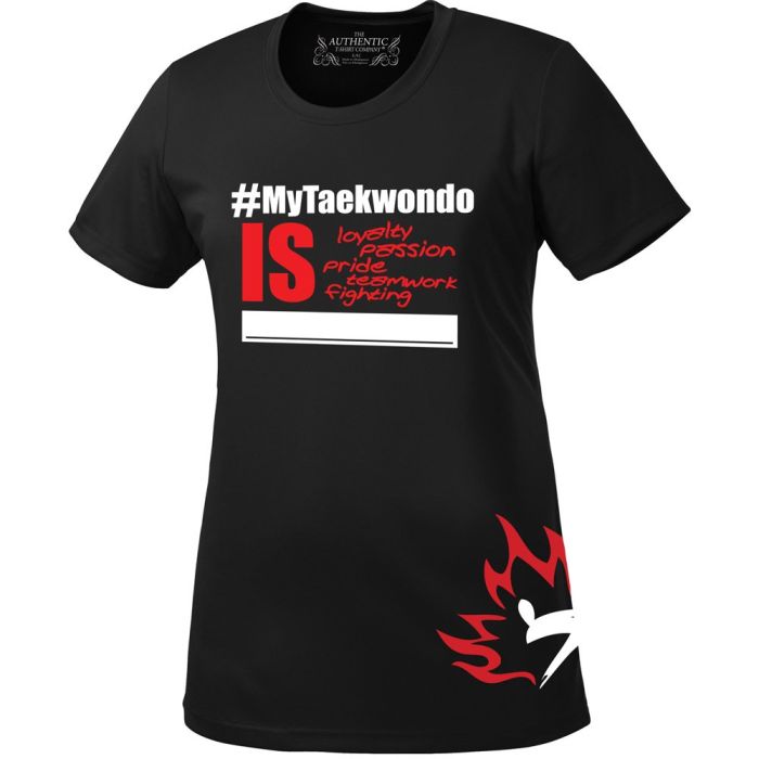 Add your own Taekwondo passion quote on this 100% Polyester, ladies contoured fit t-shirt. #MyTaekwondo hashtag series t-shirt introduced at National Taekwondo Championships in 2015 in Montreal, Canada. Black colour, with Taekwondo Canada logo featured on the left side.
