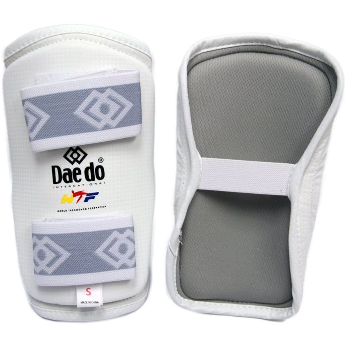 WTF approved Daedo taekwondo arm guards for competition and training. Comfortable and very resistant. Composition: Leatherette, Sponge Colour: White Size: S-M-L-XL