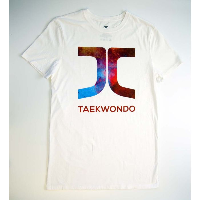 Made from Ring spun Cotton with Yarn made by continuously twisting and thinning a rope of cotton fibers. The twisting makes the short hairs of cotton stand out, resulting in a stronger yarn with a significantly softer hand. Colour Blast design using a multitude of colours to create an amazing contrast to this very comfortable white t-shirt. A multistep colour process to create a ‘blasting’ impression!