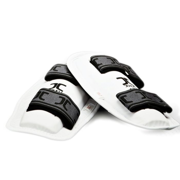 WTF approved and CE certified taekwondo premium shin protectors with anti-slip inserts. No more equipment sliding during the most crucial moments. Two elastic straps with Velcro attachments. Nylon outer, PU Foam inner.